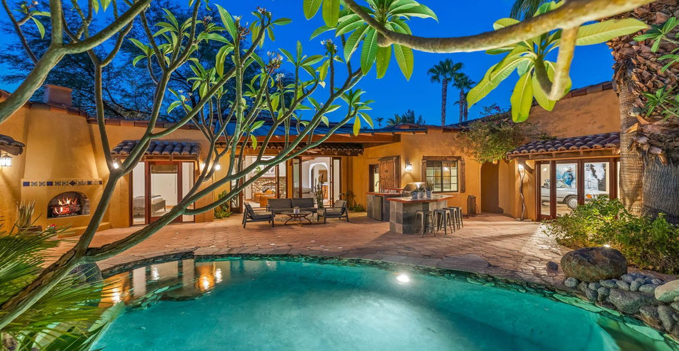 PRICE REDUCED TO SELL !! Presenting a 2005 version of a modern Mexican hacienda in the heart of Magnesia Falls Cove! Gated and totally private, this VERY unique home enjoys pueblo and Spanish Colonial influences surrounded by a virtual botanical garden featuring citrus, fig and palm trees, plumeria, and dramatic varieties of yucca and cactus. 4 beds and 5 baths with room for more if needed! Separate enchanting casita PLUS a 6 CAR GARAGE, PLUS bonus room, gym or office, large laundry and bath. The custom and unique pool & spa will convince you that you're on an exotic vacation. MANY recent upgrades and improvements (see attached document) complement the rustic warmth and old-world charm of natural wood, terra cotta and Talavera tiles, vigas, arched doorways and wooden beams. Fountains, water features, a poolside fireplace and outdoor shower just to make sure you relax, indulge and extend your stay! THIS is a most unusual and luxurious desert retreat.