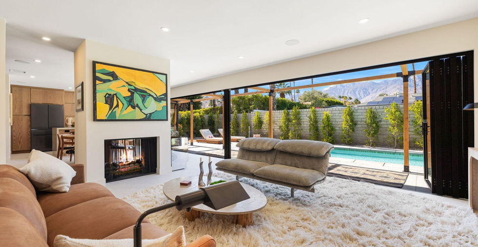 Welcome to your dream home in the tranquil Tahquitz Creek Golf neighborhood of Palm Springs. This stunningly remodeled 3-bedroom, 2-bathroom residence blends modern luxury with effortless indoor-outdoor living. Every detail has been thoughtfully upgraded, making this home an entertainer's paradise and a peaceful retreat. Step inside to discover an open-concept living space, where bifold doors seamlessly connect the indoors to the newly designed backyard, featuring a saltwater pool and spa framed by lush perimeter hedges. The sleek, contemporary kitchen boasts Samsung Bespoke black stainless appliances, limestone countertops, and all-new cabinetry, while the living and dining areas are enhanced by a built-in speaker surround sound system. New recessed lighting and upgraded wiring elevate the ambiance throughout. The primary suite is a true sanctuary with an elegant en-suite bath featuring a Kohler bidet, premium finishes, and access to the backyard oasis. Two additional bedrooms offer custom closet shelving and abundant natural light. Every room has been upgraded with all-new windows and doors, including stylish awning windows. Additional highlights include an upgraded HVAC system, a brand-new insulated garage door with a quiet motor, a full plumbing and gas line re-pipe, and a top-tier security camera system for peace of mind. The exterior has been transformed with a new fence, refreshed landscaping with upgraded sprinklers, and a beautifully designed backyard perfect for relaxation or entertaining. Located just minutes from world-class golf, scenic hiking trails, premier shopping, and fine dining, this exceptional home offers the best of Palm Springs living. No HOAs and you own the land! Don't miss your chance to own this modern desert retreat!